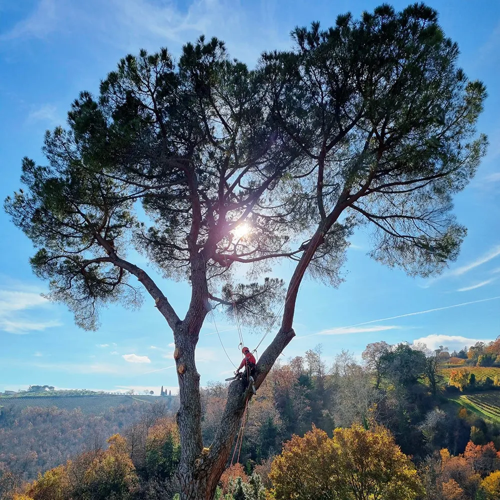 Nel caso in cui ci siano difficoltà con gli accessi carrabili, nei centri città o in prossimità di strade, siamo operativi anche ricorrendo alla tecnica del TREE CLIMBING “arrampicata su albero”.
